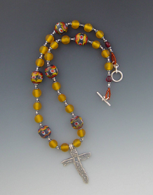 | Prayer beads, rosaries, crosses and spiritual mosaics are made during meditation. I love infusing them with warm, peaceful energy. The prayer beads (upper right) were included in Lark Crafts, Beading with World Beads. |